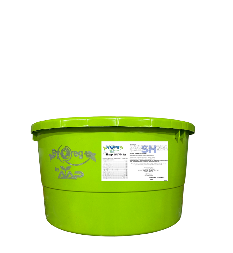 The By-O-reg+® Sheep PRO/MIN Tub is a free-choice nutritional supplement designed for sheep on pasture or forage-based diets to help complement daily nutrition and support overall flock performance. Formulated with a balanced blend of protein, vitamins, and trace minerals and enhanced with By-O-reg+® technology, it helps support nutrient utilization, digestive function, and consistent intake.